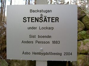 Socken: Åsbo Gård: Lockarp Platsnamn: Stensäter Typ: Backstuga Koordinater: [58.16608,15.22147] Visa på Kartbild.com