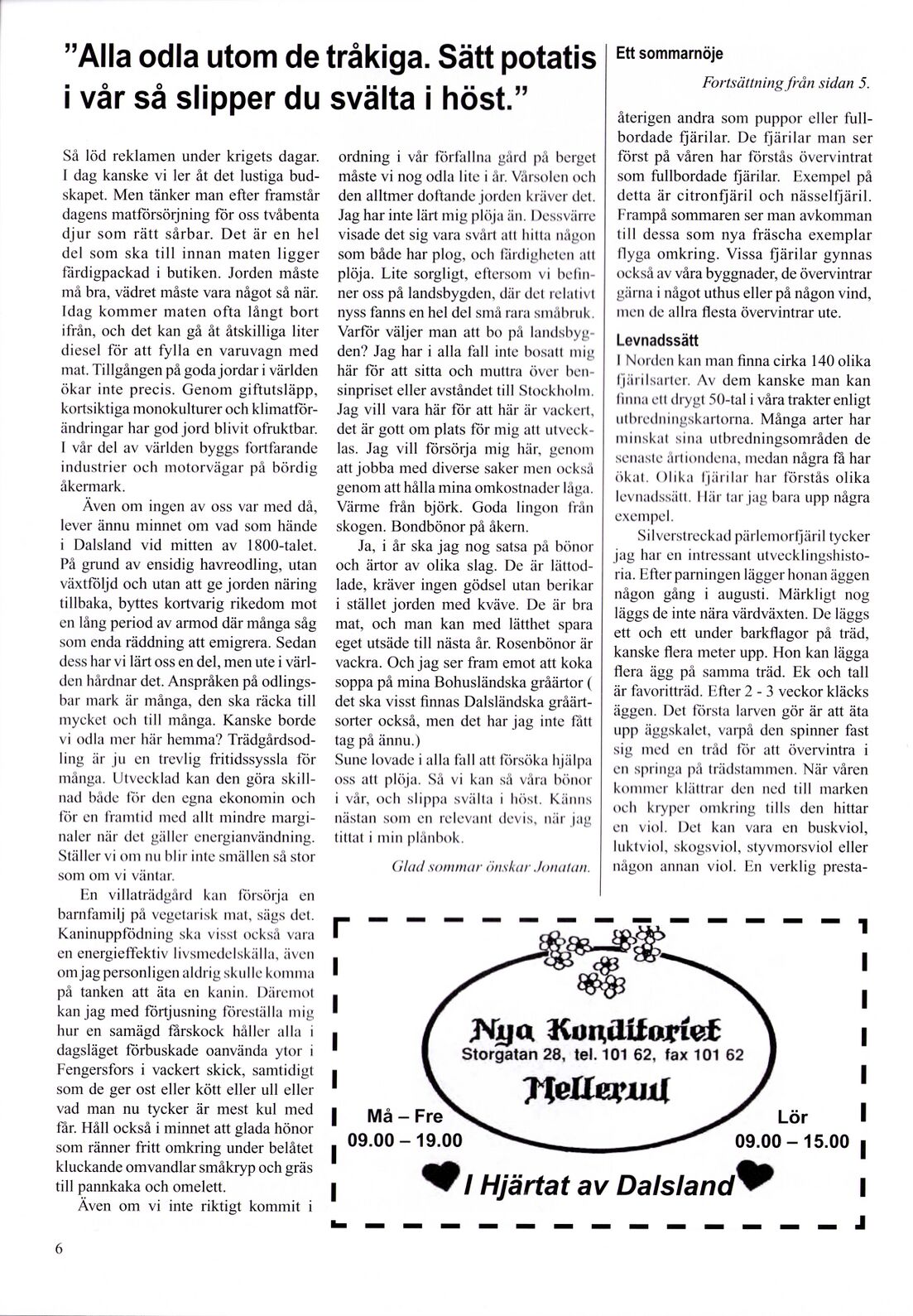 <poem> Innehåll Tema sommar - sid. 1 Föreningen växthuset utökar målgrupp - sid. 2 Kan Ånimmen bli en 5-stjärnig fiskesjö - sid. 3 Att odla utom de tråkiga. Sätt potatis i vår så slipper du svälta i höst - sid. 6