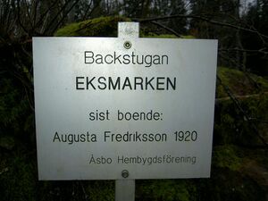 [[Fil:Östergötland-Åsbo-Eksmarken-skylt-vy.jpg|miniatyr|Platsen för torpmärkning]] |