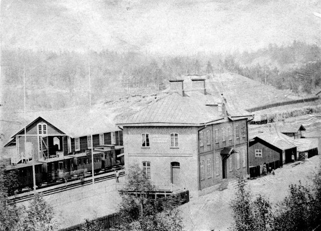 Boxholms järnvägsstation, troligen mellan 1882-1890. Bilden ägs av Föreningen Krafttaget.