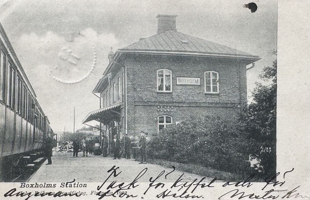 Boxholms järnvägsstation, vykort utgivet 1902. Bilden ägs av Christian Klingspor.