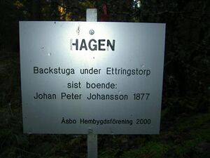 Socken: Åsbo Gård: Ettringstorp Platsnamn: Hagen Typ: Backstuga Koordinater: [58.16778,15.14887] Visa på Kartbild.com