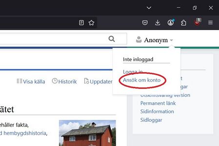 För att kunna skapa och/eller redigera sidor på Sockipedia behöver du ett användarkonto. Du kan ansöka om ett konto genom att hitta rutan där det står "Anonym" i högra hörnet längst uppe på sidan.
