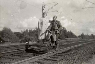 Familj i Banvaktstuga 105 under början av 50-talet. Bilden ägs av Gunnar Johansson.