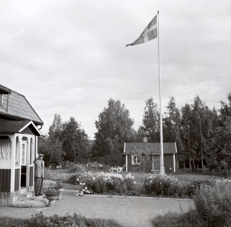 Bygget och "lillstugan" . Gränsfall 1960. Edvin Karlsson på trappan.