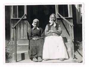 Detta är en bild från Krusebol, där Johan och Sofia Skog (f. Larsson) bodde. Jag tror att pojken på bilden kan vara Ingvar Skoog (född 1932) , men vem är i så fall den äldre personen på bilden? Bildägare: Roger Skoog.