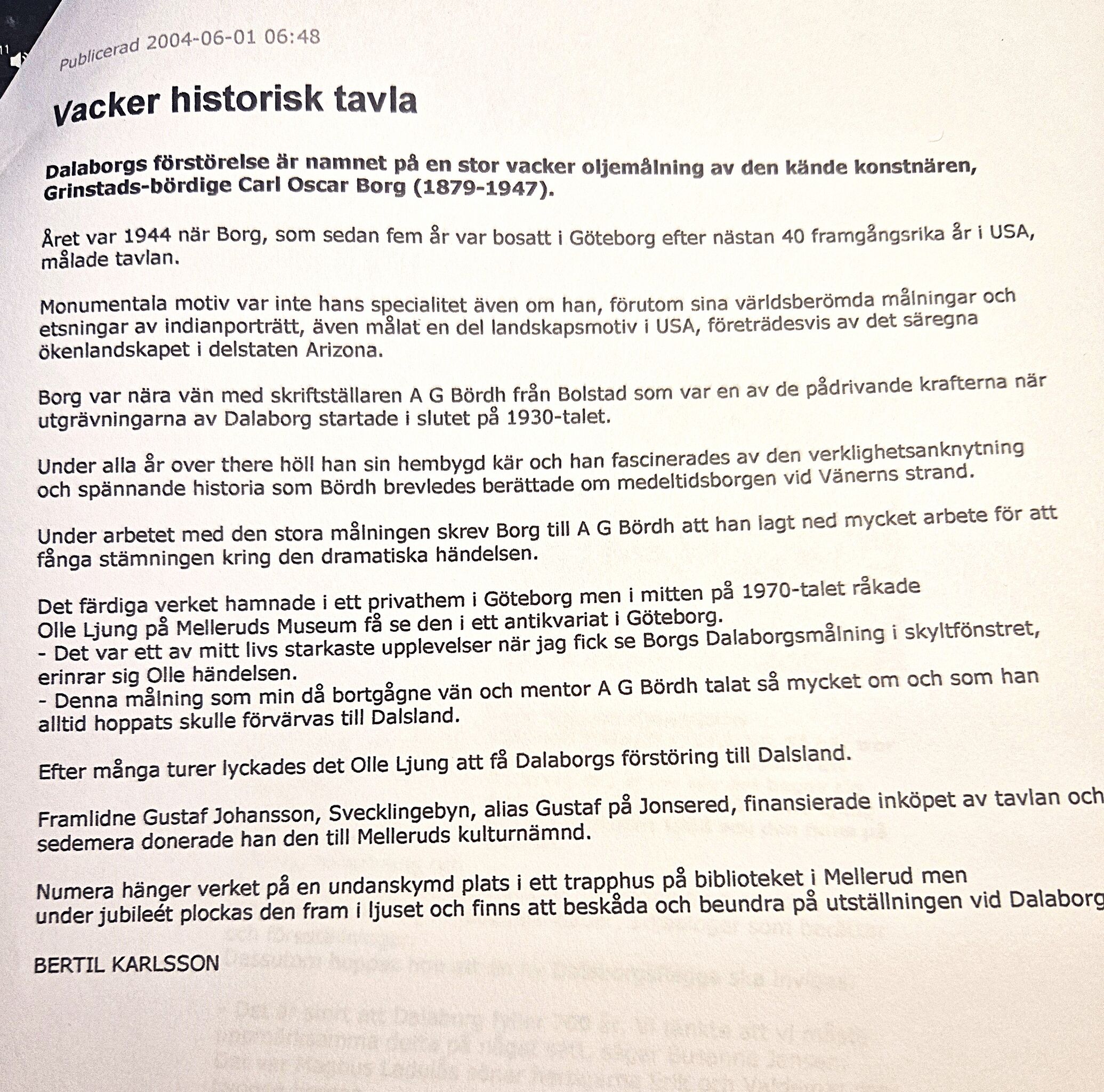 artikel om Dalaborg-tavlan