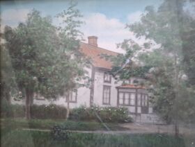Kolorerat foto Ressbyn mitten av 1930-talet