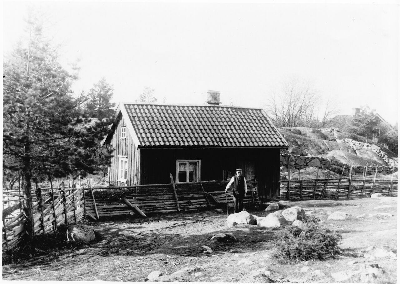 Korsvägen, "Snickar-Johannes" framför sitt hus.