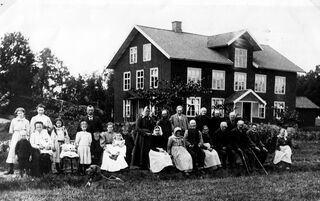 | nuvarande | 9 september 2025 kl. 08.03 | 2 543 × 1 601 (2,64 Mbyte) | LGAnders (diskussion | bidrag) | Ålderdomshemmet i Västra Berg (troligen 1911) I mitten föreståndaren Viktor Alström med hustru Kristina Granat och deras 5 barn. Stående nummer 2 : Anna Maria Johansson, Krukered. Boende på Hemmet: Anna Larsdotter med 3 av sina barn. Sittande till vänster. Övriga boende, stående från vänster: Nr. 1. Anna Sofia Olofsdotter "Dambacke-Soffi" 5. Johan Johansson, Liljered (dräng) 6. Olof Bengtsson, Klevmaden "Katt-Ola" sittande från vänster: 1. Greta Andersdotter i Bäck (troligen) 2. Beata Anders... |