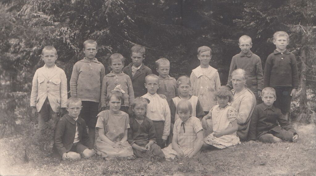 Okänt foto på skolklass. (skrivet på baksidan: 1916 + 7 = 1923?