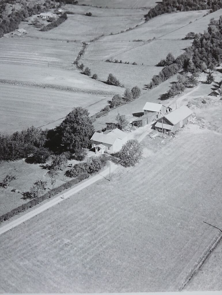 Flygfotografi över gården Östra Berg i Ånimskog. Bilden är från 1952.