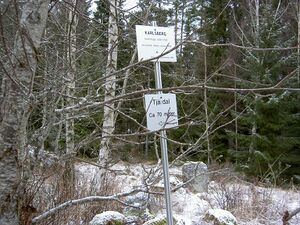 Karlsberg, torpmärkning och skylt till tjärdal