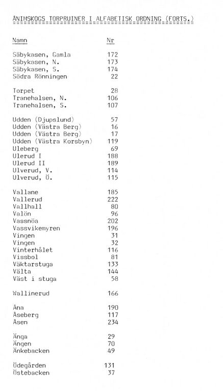 Index över Torpruiner i Ånimskog
