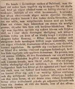 Denna artikel var införd i Skara Tidning den 29 maj1847. Berättelsen har kommit i flera versioner i olika tidningar. Även i bokform.Det var Conny Källvik som skrev den.