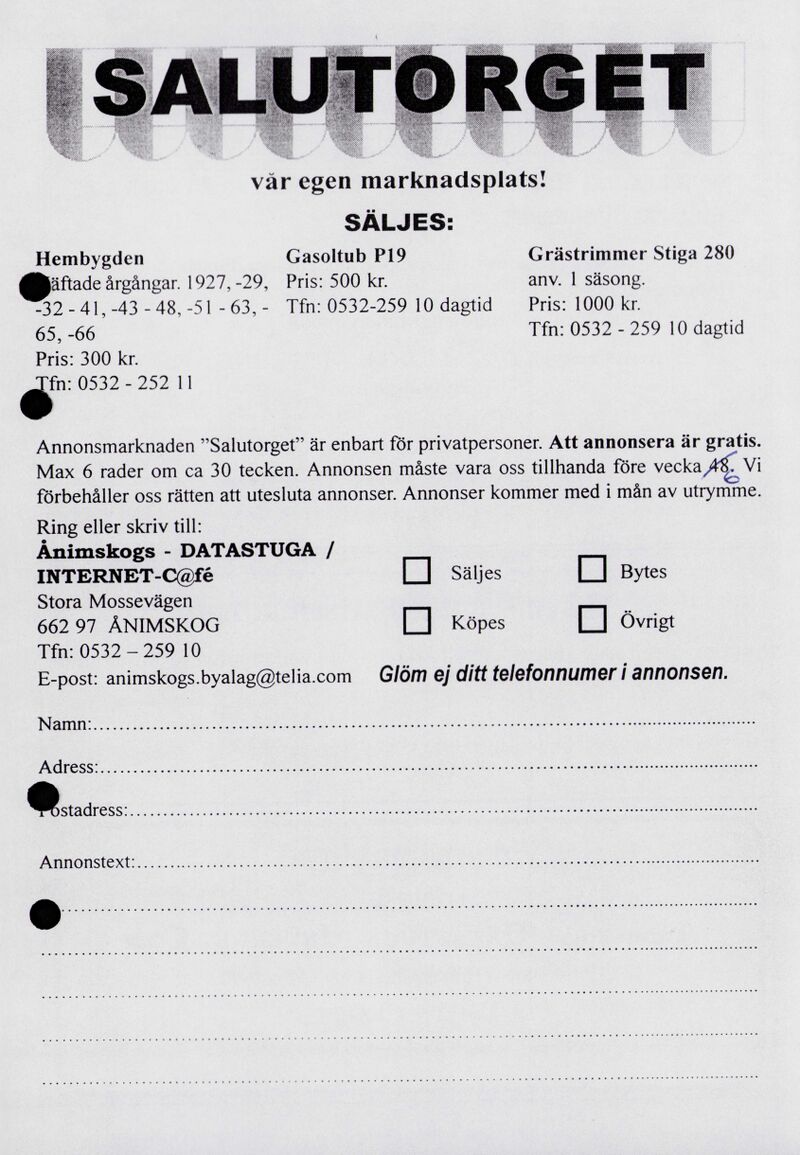 Ånimskogs annonsblad - sid. 1