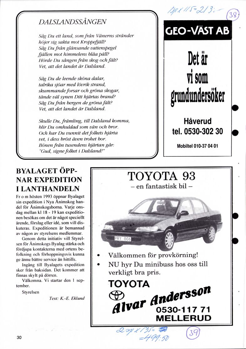 Dalsland/Ånimskog/Byabladet nummer 26 år1993