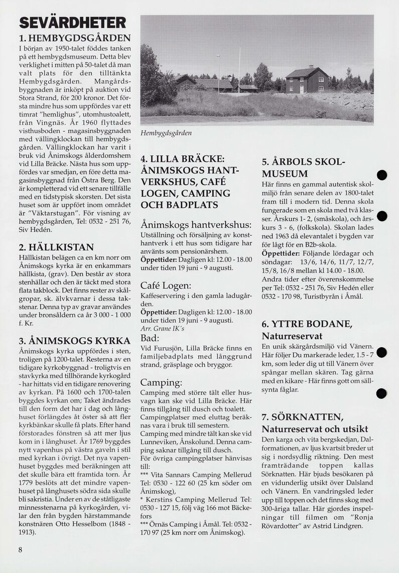 Innehåll Presentation av Ånimskog Turistinformation - sid. 2 Sov och ät gott - sid. 3-4 Karta - sid. 6-7 Sevärdheter och dansprogram - sid. 8-9 Allemansrätten - sid. 11