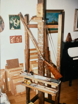 Han kallade sitt favorit gevär för "Harpiskan". Den lämnades in för översyn till konstnären Hugo Löfving 1987, av Eriks arvingar. Nuvarande ägaren till Kingrenstugan, Staffan Löfving har konstaterat. Att det vid ombyggnad av uthuset vid östra sidan huset, fanns mycket rester av slagg och andra gjutskal där, som tyder på att där har hanterats smides stål. Om han hade en ånghammare eller dylikt, eller någon form av ässja där för att bearbeta och behandla stålet vet vi inte. Kan ju vara bra att ha sådan utrustning nära huset när det skall värmas och eldas och smidas under lång tid över hela dygnets timmar, kan ju vara praktiskt. Men stål till gevär måste bearbetas mycket för att få rätt kvalitet, det vet vi.