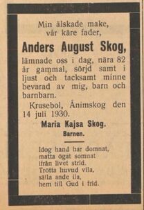 Dödsruna för Anders August Skog