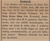 Minnesord efter Maja Kajsa Skog (f. Andersdotter)