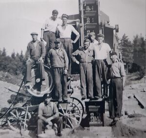 Mitt emot soldattorpet fans en grusgrop med tillhörande upplag som vägverket hade för både rör och olika sorters sten. Där stod även detta krossverk. kortet är från ca sent 1940-tal.