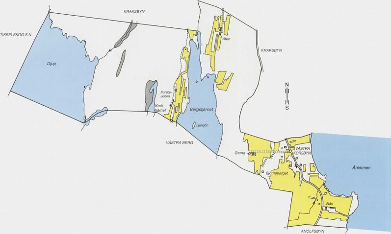 Gårdarna Grana och Björnberget ligger västerut och sedan vidtar skogsområdena som sträcker sig ända till Djupsjön.