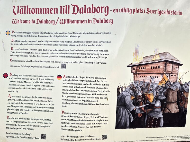 Ni står framför Dalslands enda medeltida borgruin. Kung Magnus Ladulås söner; hertigarna Erik och Valdemar byggde år 1304 Dalaborg som senare raserades under Engelbrektupproret 1434.