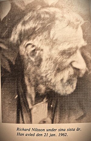 Richard Nilsson tillbringade sin sista tid i livet i Rhenströmska stiftelsens ålderdomshem vid Bolstad kyrka. Richard syster Elin Fredrika dog på nyårsafton 1961 och Richard gick bort tre veckor senare, precis efter sin syster begravning. Han var ogift och Richard/Rickard Nilsson (Nelson) ligger begravd, tillsammans med sina syskon Elin och Emil, i en gemensam gravvård på Bolstad kyrkogård.