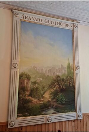 Altartavlan i Persbyns Missionshus. Foto från Ingrid Frykberg.