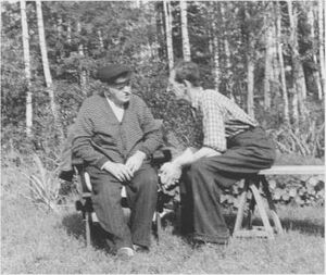 Adolf Sandberg i samspråk med magen Erik Enberg.