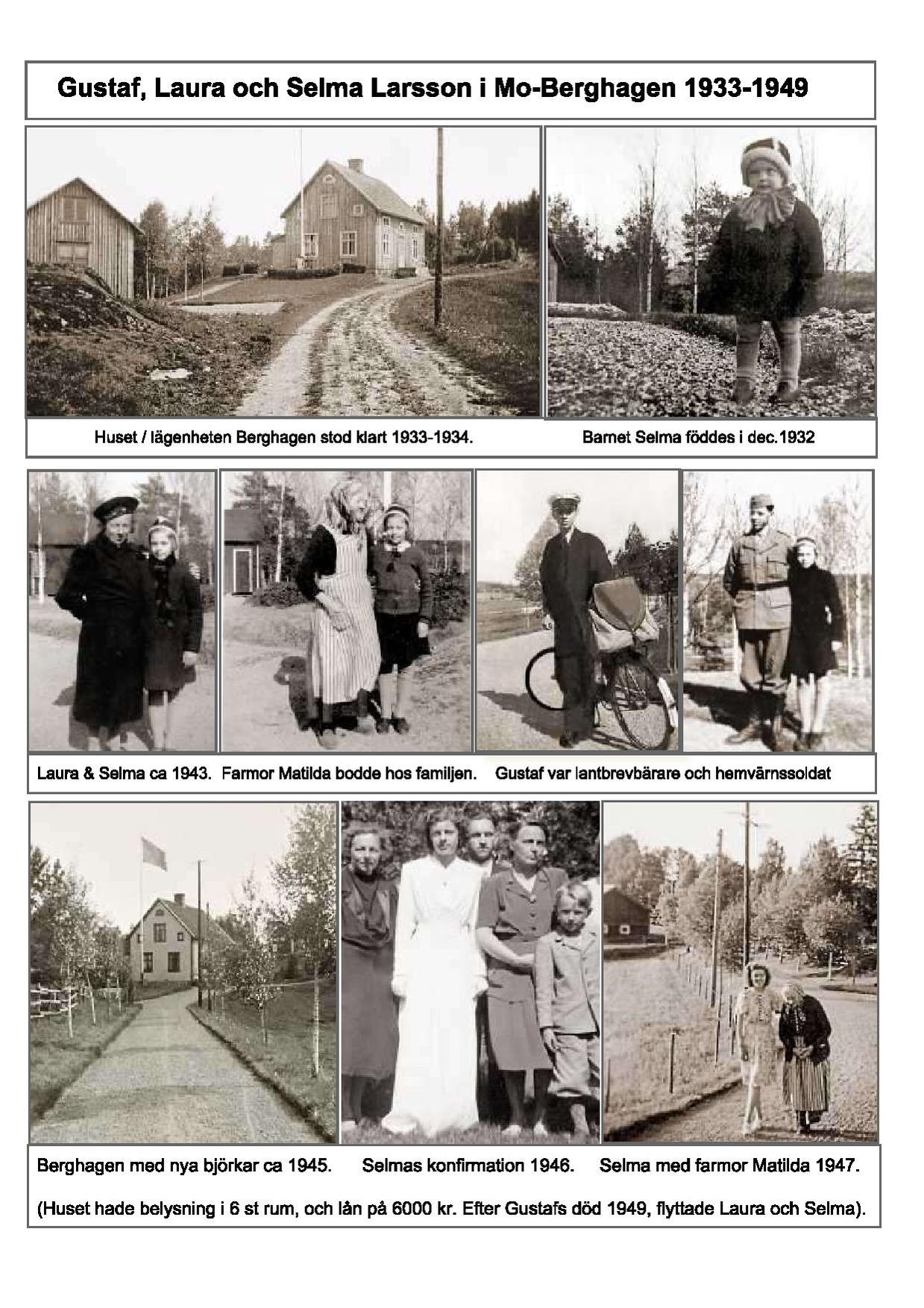 En kort beskrivning av familjen som byggde huset och bodde där till 1949. Gustaf Larsson, Laura Larsson, Selma Larsson, Matilda Hansson